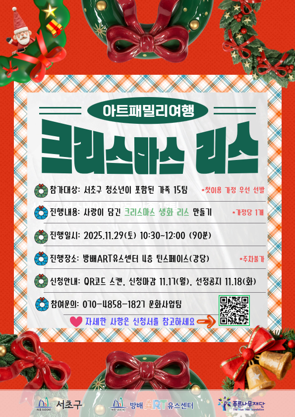 [모집] 2025 아트패밀리여행 '크리스마스 리스 만들기' 가정 모집