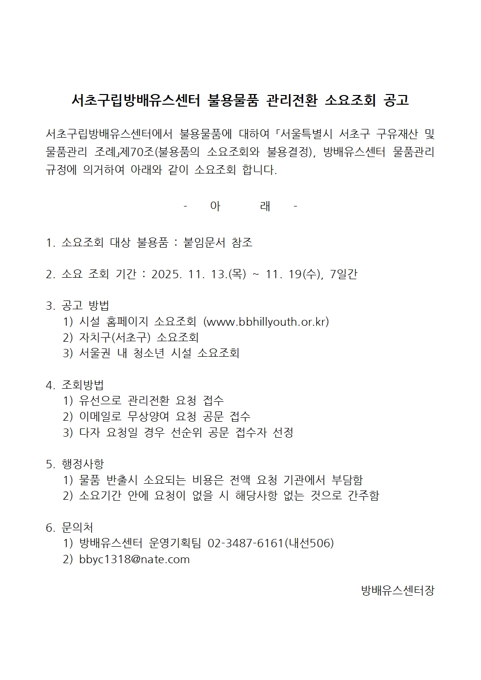 방배ART유스센터 불용물품 관리전환 소요조회
