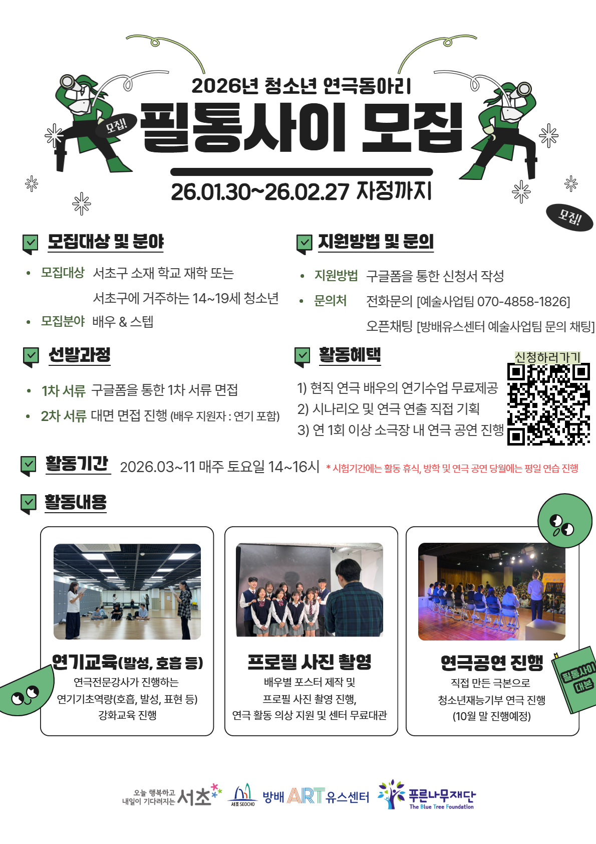 ✨ 2026 청소년 연극동아리 <필통사이> 모집! ✨